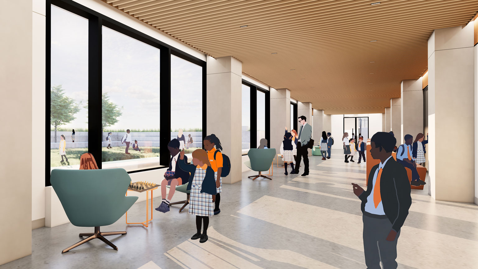 Each grade has its own dedicated entrances, outdoor terraces, and learning areas. But all students will benefit from the resources available on campus.